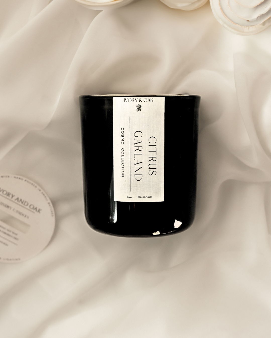 Citrus garlands adorn the walls, while sachets filled with seasonal spices like cinnamon, cloves, and tobacco leaf infuse the air. A grounding blend of fir balsam and warm musk creates a cozy, festive atmosphere
