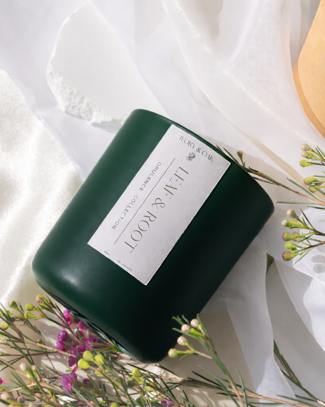 Crushed green leaves and cool eucalyptus open the scent with a clean, fresh lift. Soft orchid notes follow, layered with a subtle touch of green pepper for brightness and depth. Vetiver and patchouli ground the fragrance, earthy and rooted, bringing balance to the green top notes. Fresh, natural, and quietly complex, this scent captures the space between light and earth