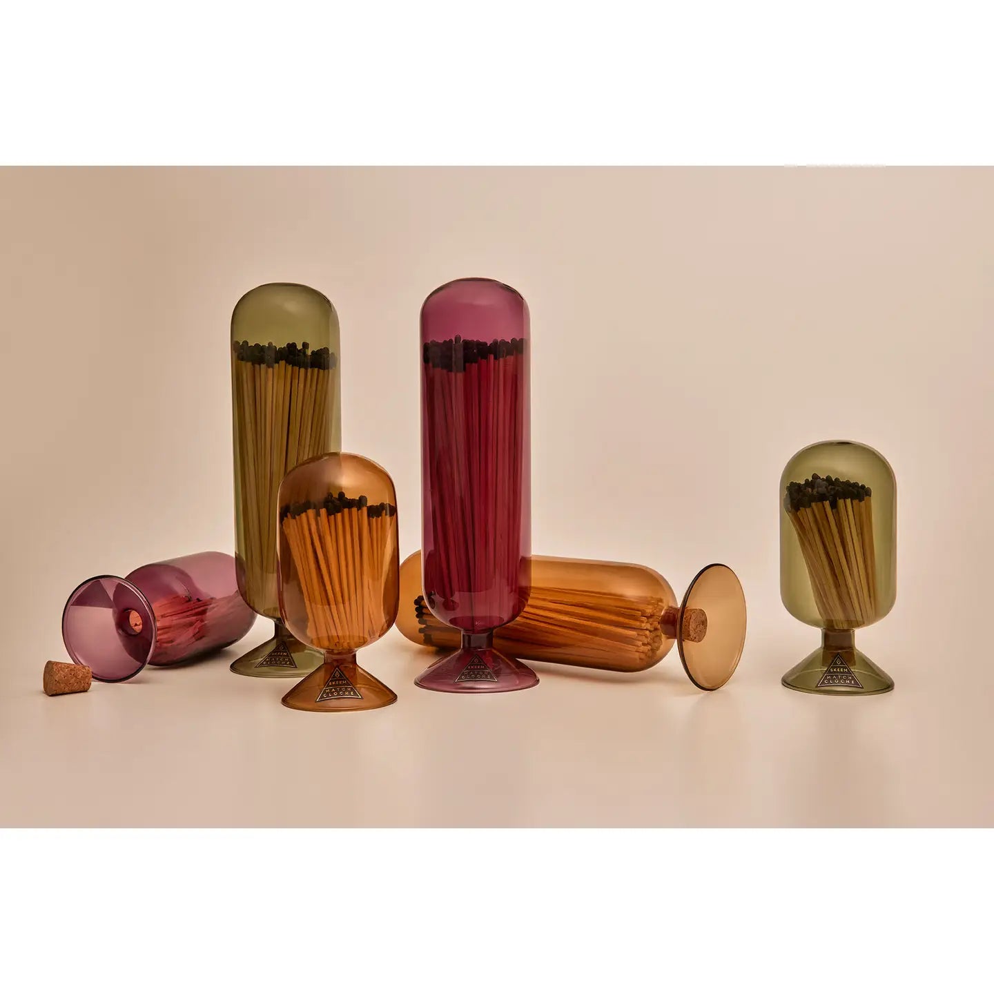 A consistent favorite among editors, stylists, and home dรฉcor enthusiasts, the Match Cloche was inspired by vintage glass domes used to protect emerging seedlings. Each handblown glass vessel is fitted with a cork to elegantly house an assortment of matchsticks, while a striker flint on the side adds functionality. Styled on the mantel or coffee table, this intriguing concept is a guaranteed conversation starter.